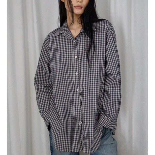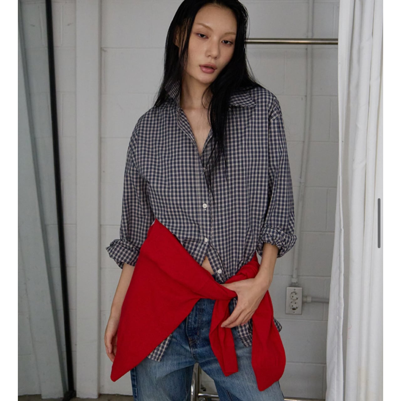 オーバーサイズのシャッツがシルエットをよく見せます。シャツの上にニットなどレイヤードトップスを合わせるもオススメです。