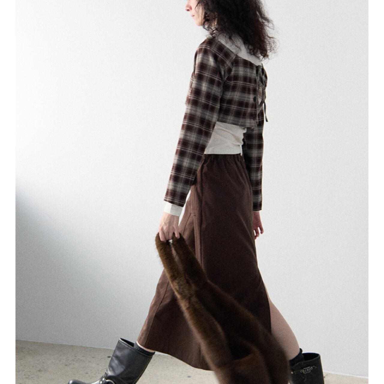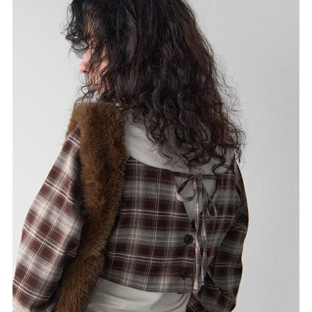 ショート丈のチェックオフショルダー。