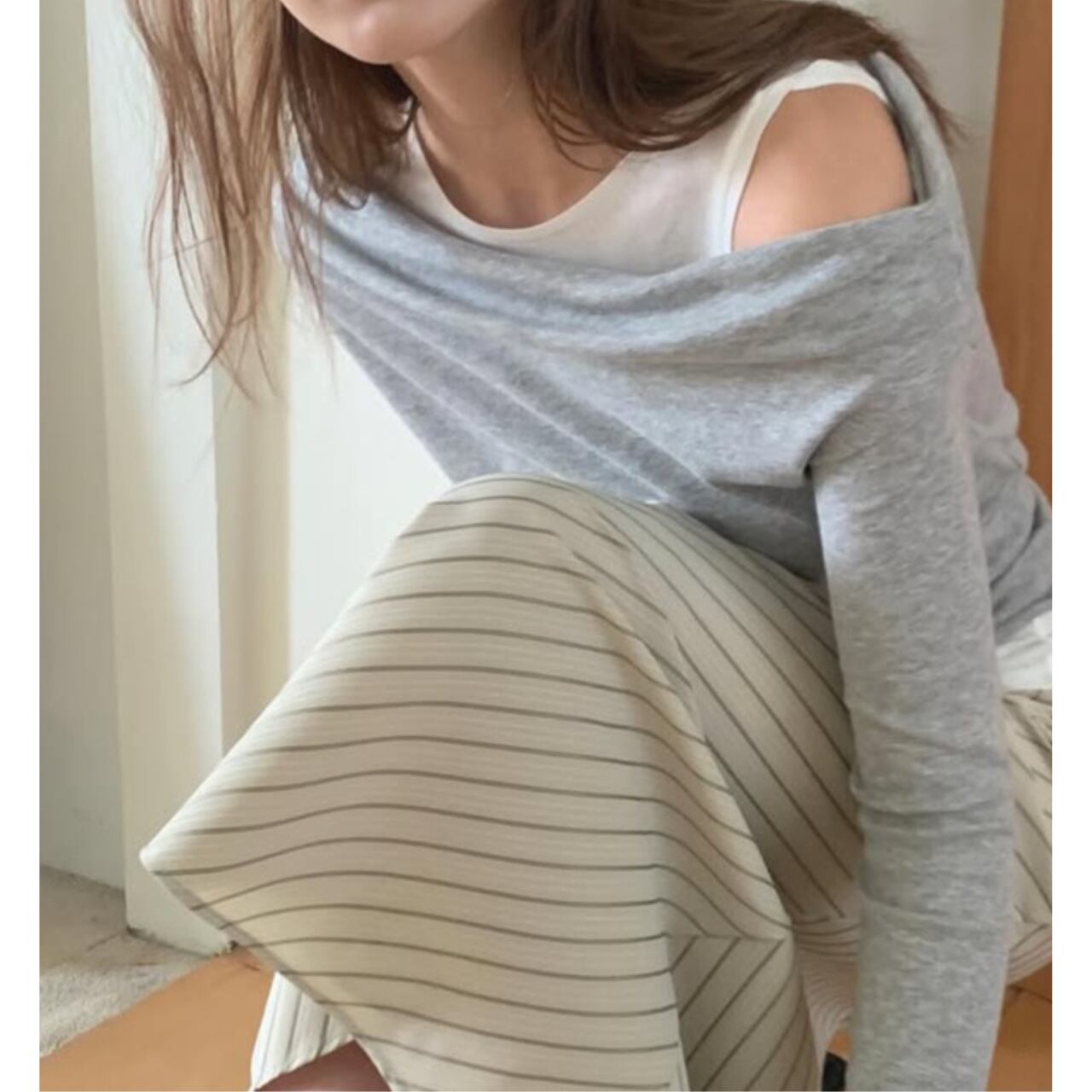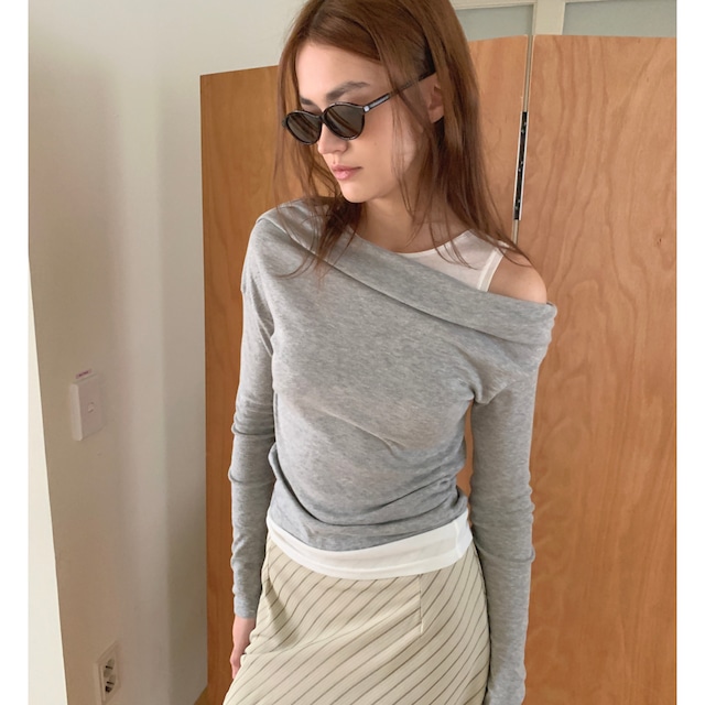 レイヤード風トップス。