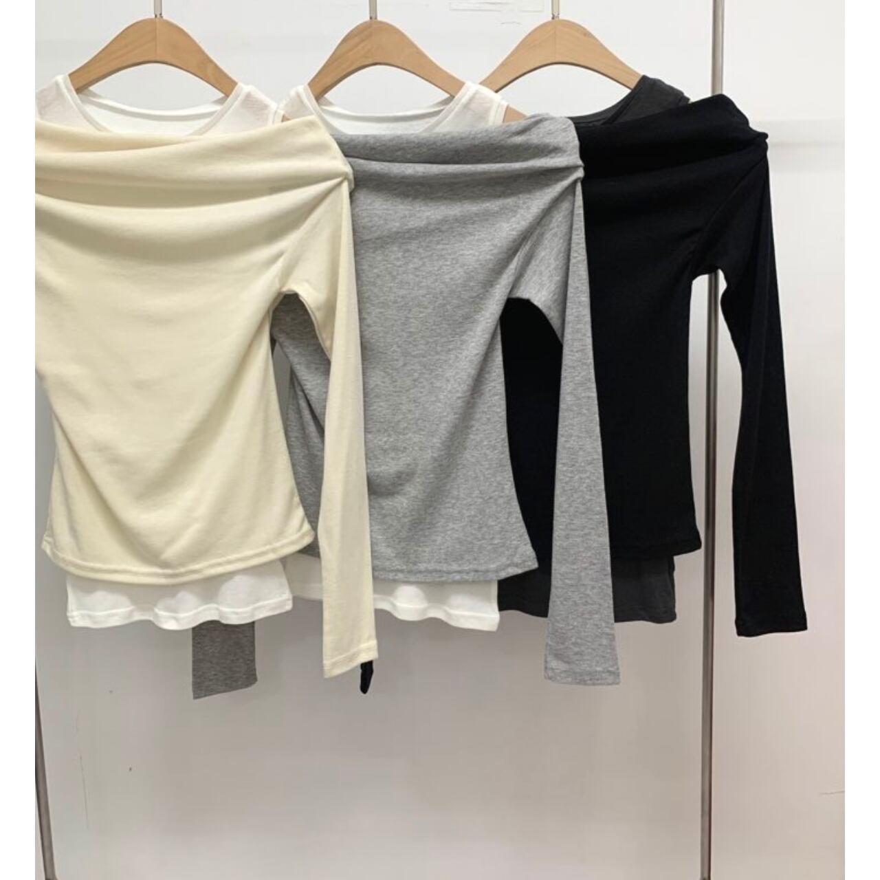 一枚で、レイヤードしたようなおしゃれ感たっぷりのアイテムです。