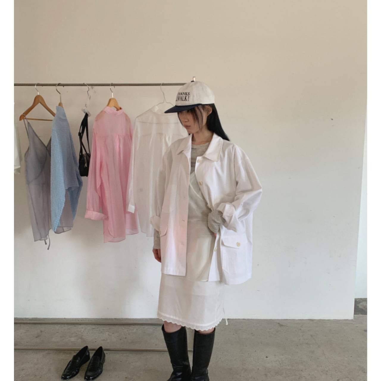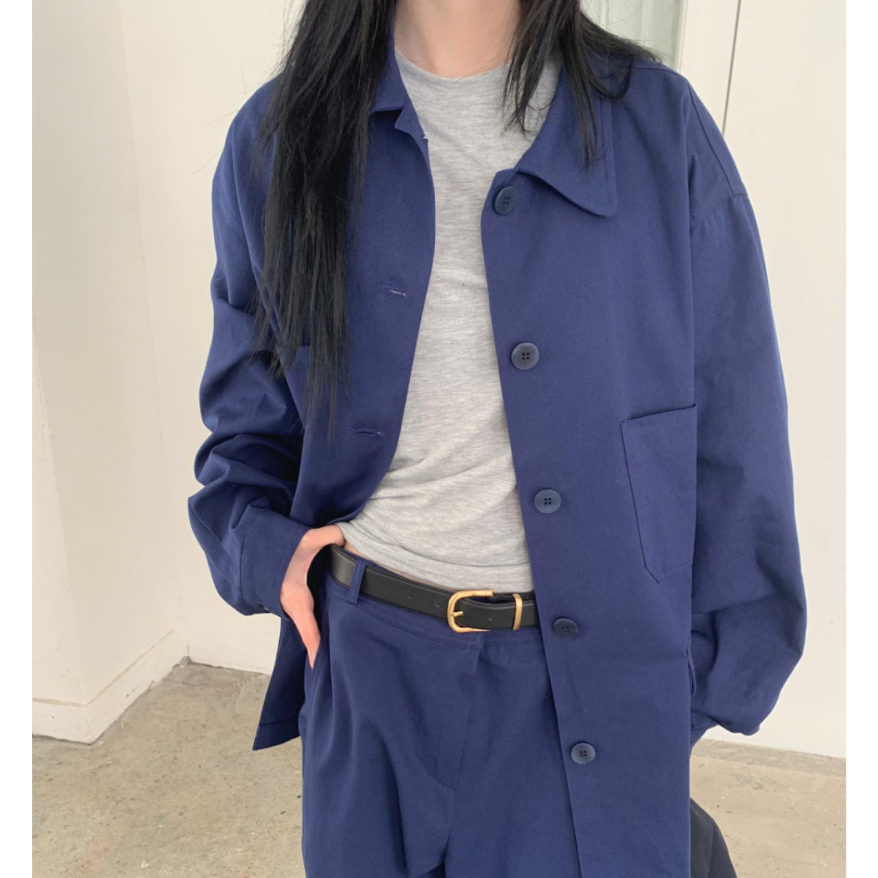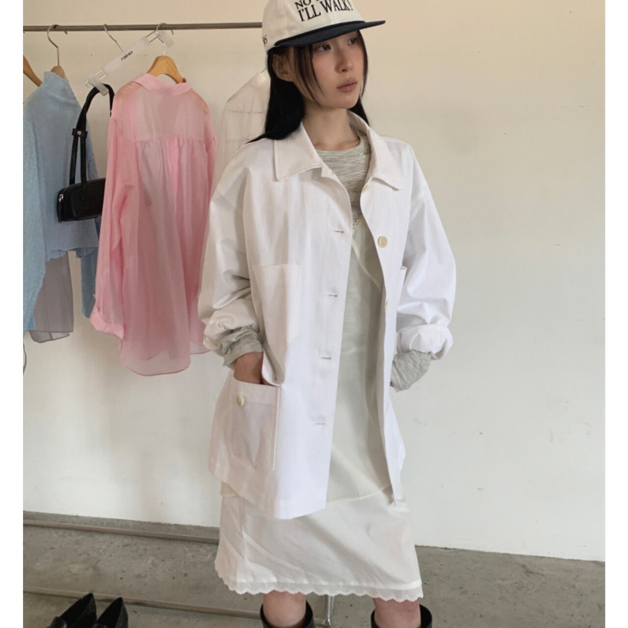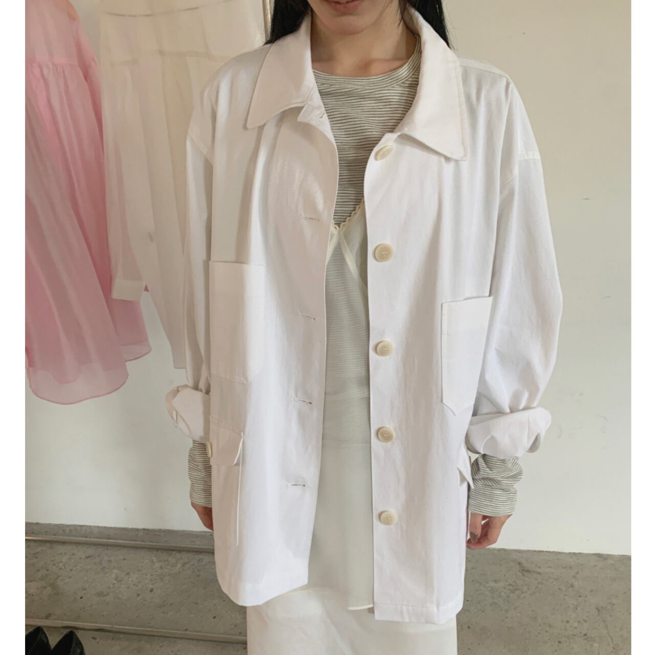 羽織るだけで今っぽい雰囲気のコットンジャケット。