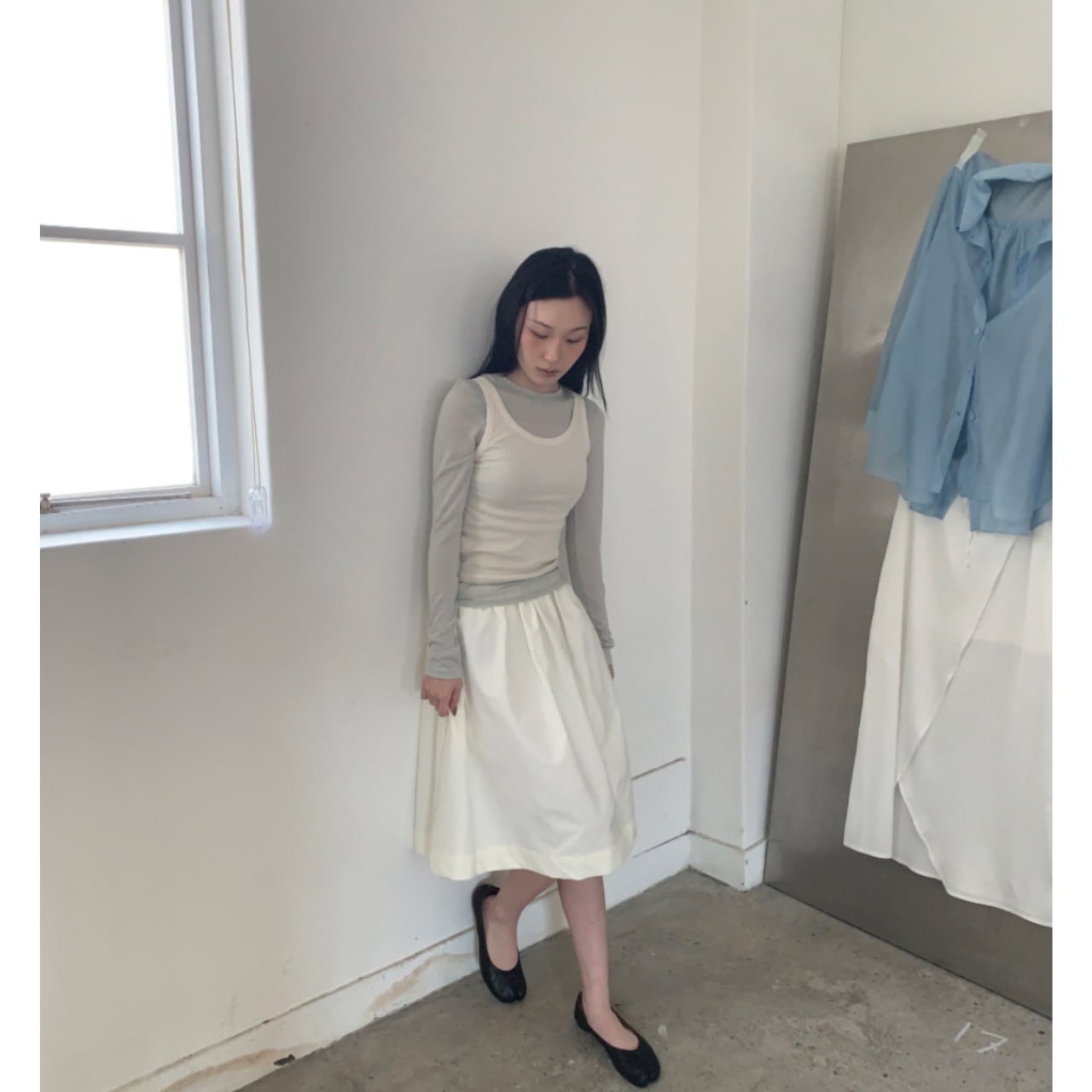 一枚で着てもインナー使いやレイヤードにも使えるトップスは今季オススメアイテム。
