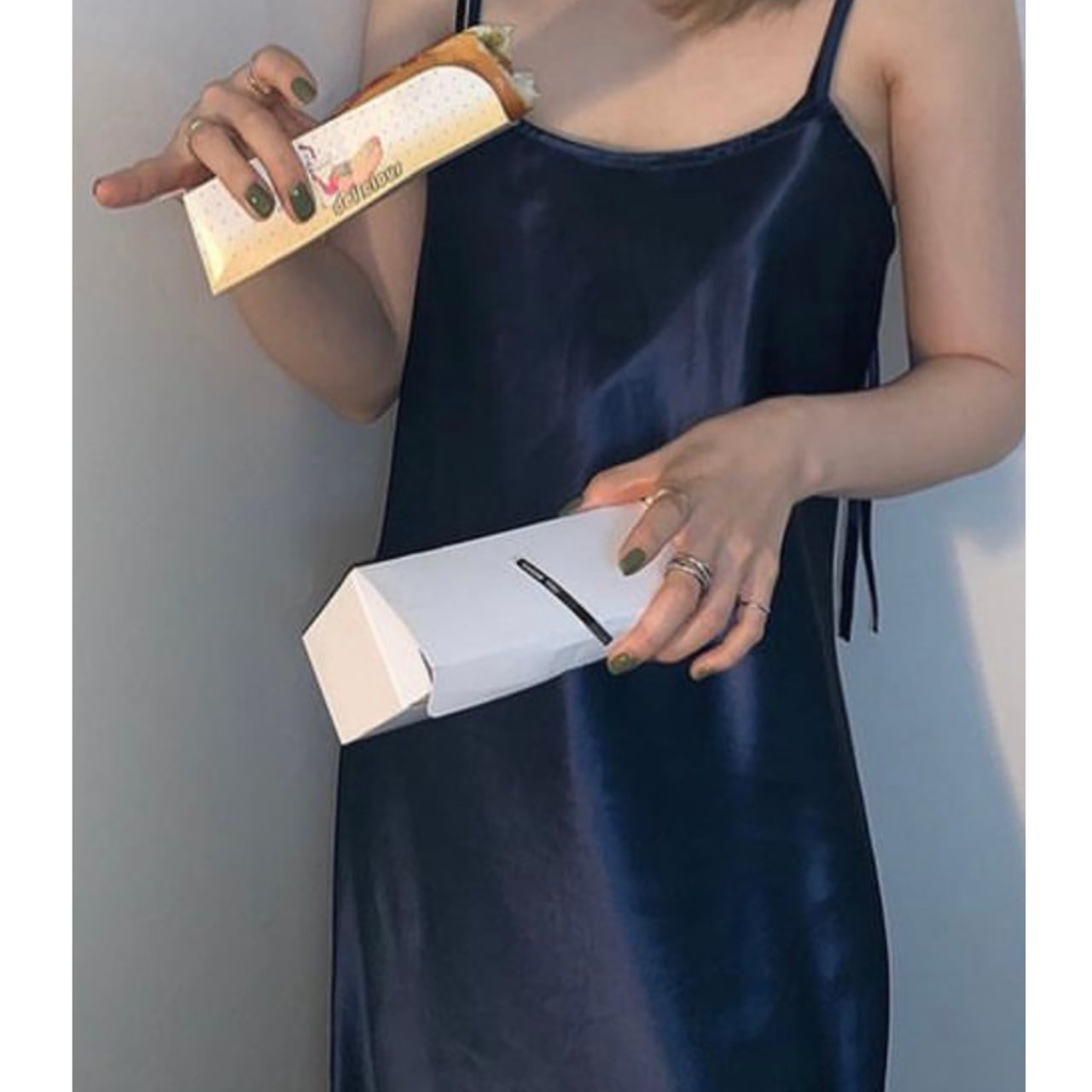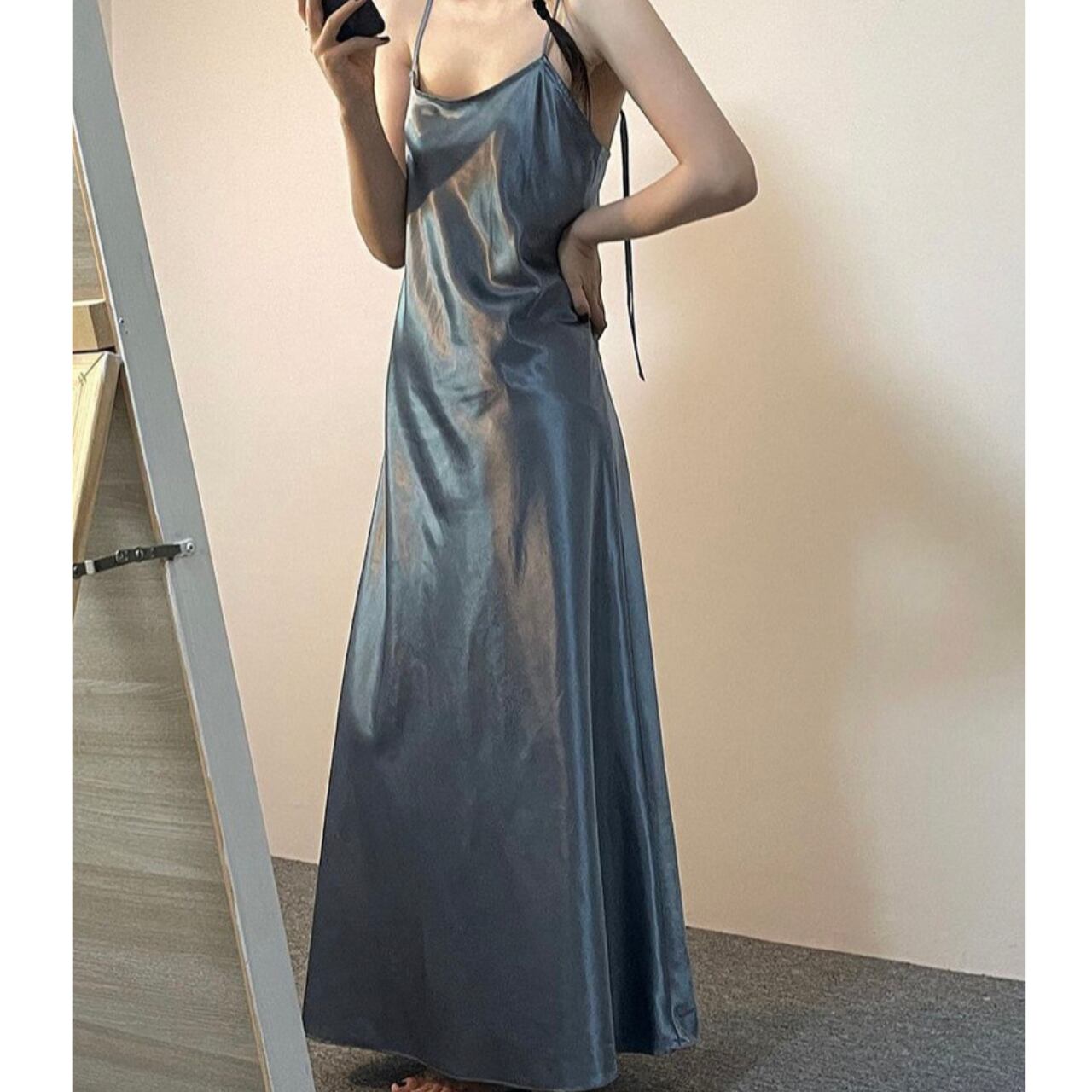 サテンロングワンピース