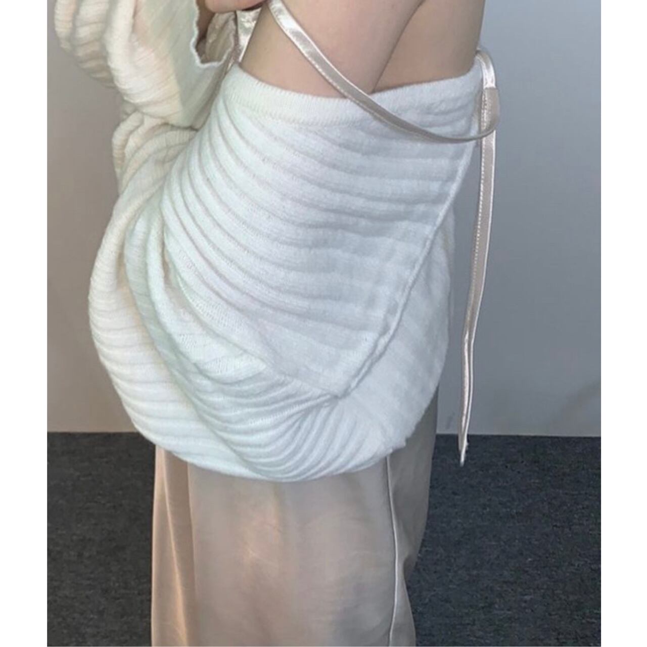 サテンワンピースにシアーニットを重ねて着るスタイリングもオススメです。