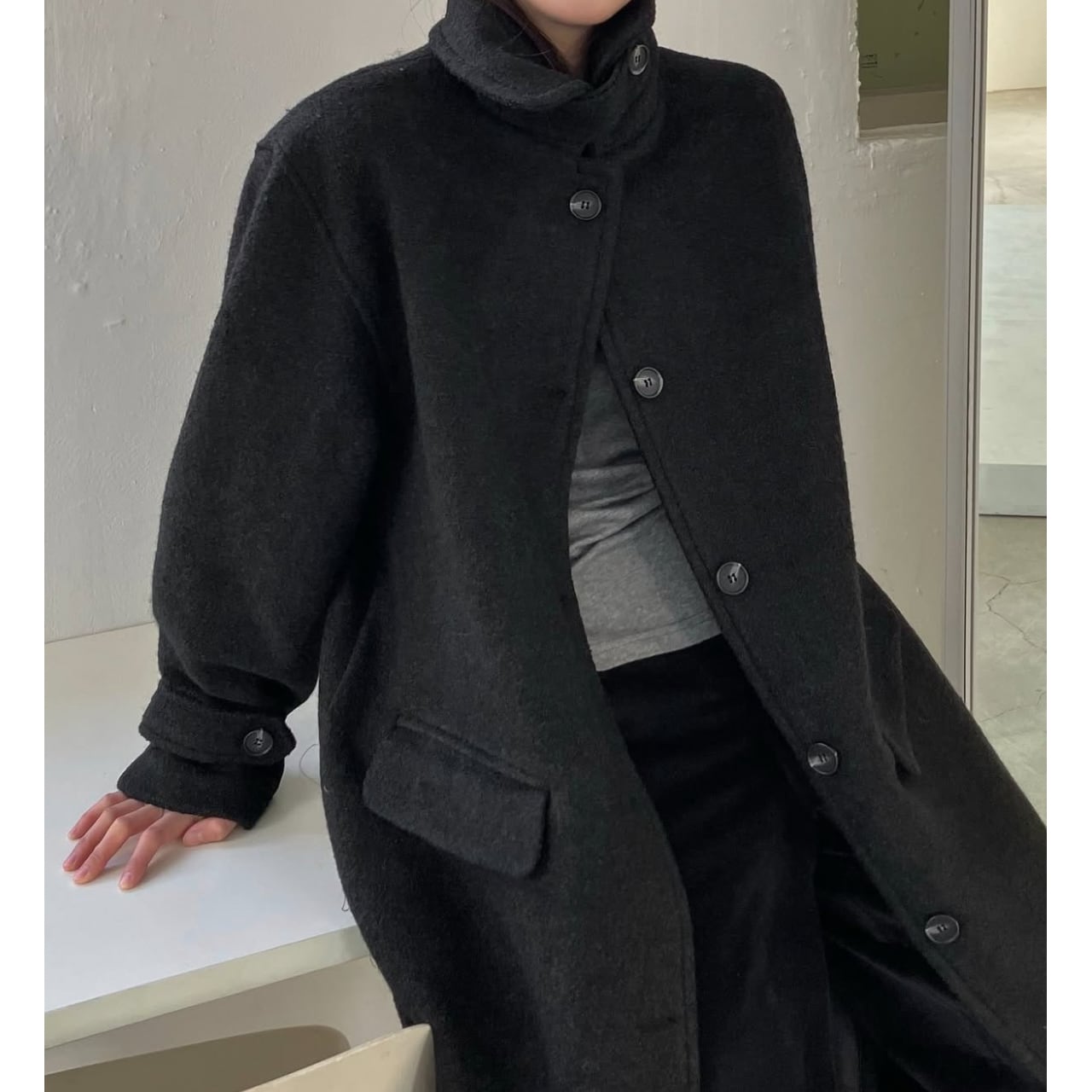 オーバーサイズのウールロングコート。