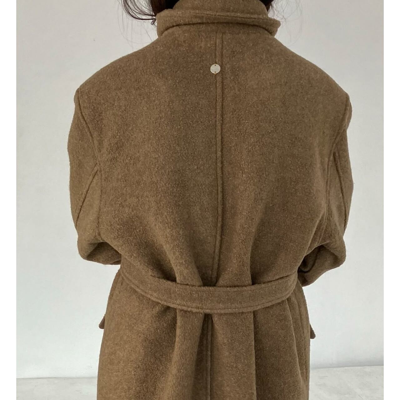 ボリュームトップスや厚手のニット、ジャケットの上からでも羽織ることのできるサイズ感です。ばさっと羽織る雰囲気が歩いた時に格好いい後ろ姿を叶えてくれるコートです。