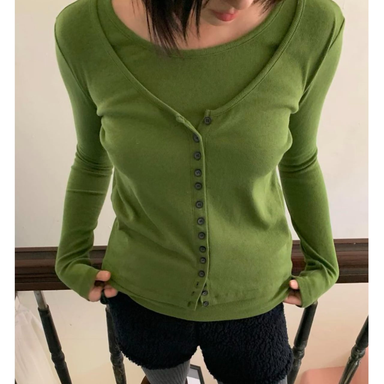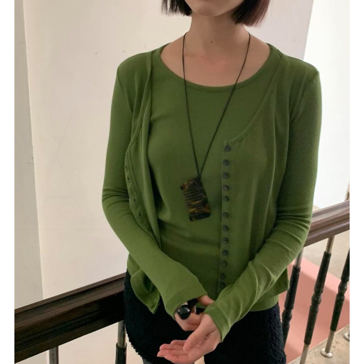レイヤード風カーディガン。